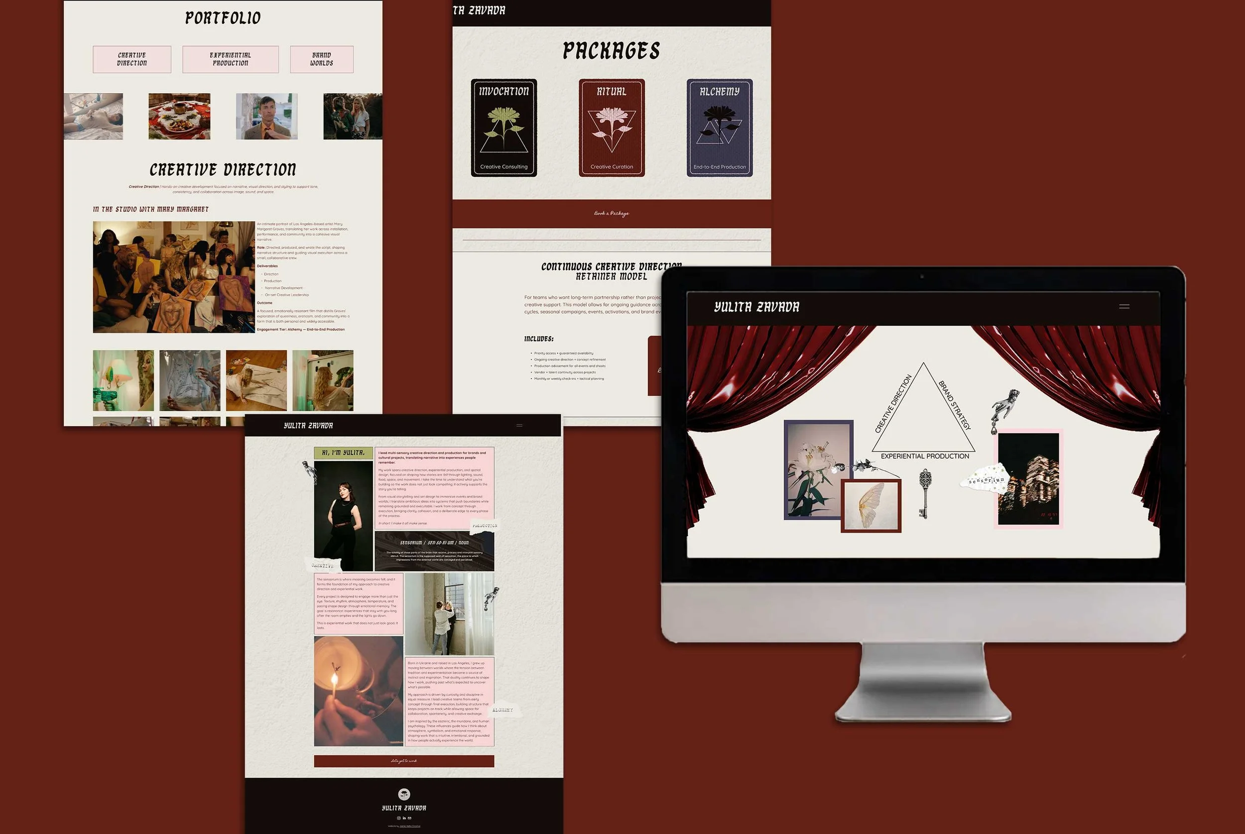 Yulita Zavada (she/her) leads multi-sensory creative direction and production for brands and cultural projects, translating narrative into experiences people remember. Her work spans creative direction, experiential production, and spatial design, focused on shaping how stories are felt through lighting, sound, food, space, and movement. I loved developing Yulita’s personal brand and digital presence through developing brand design foundations, a website, and a business card design. Yay!
